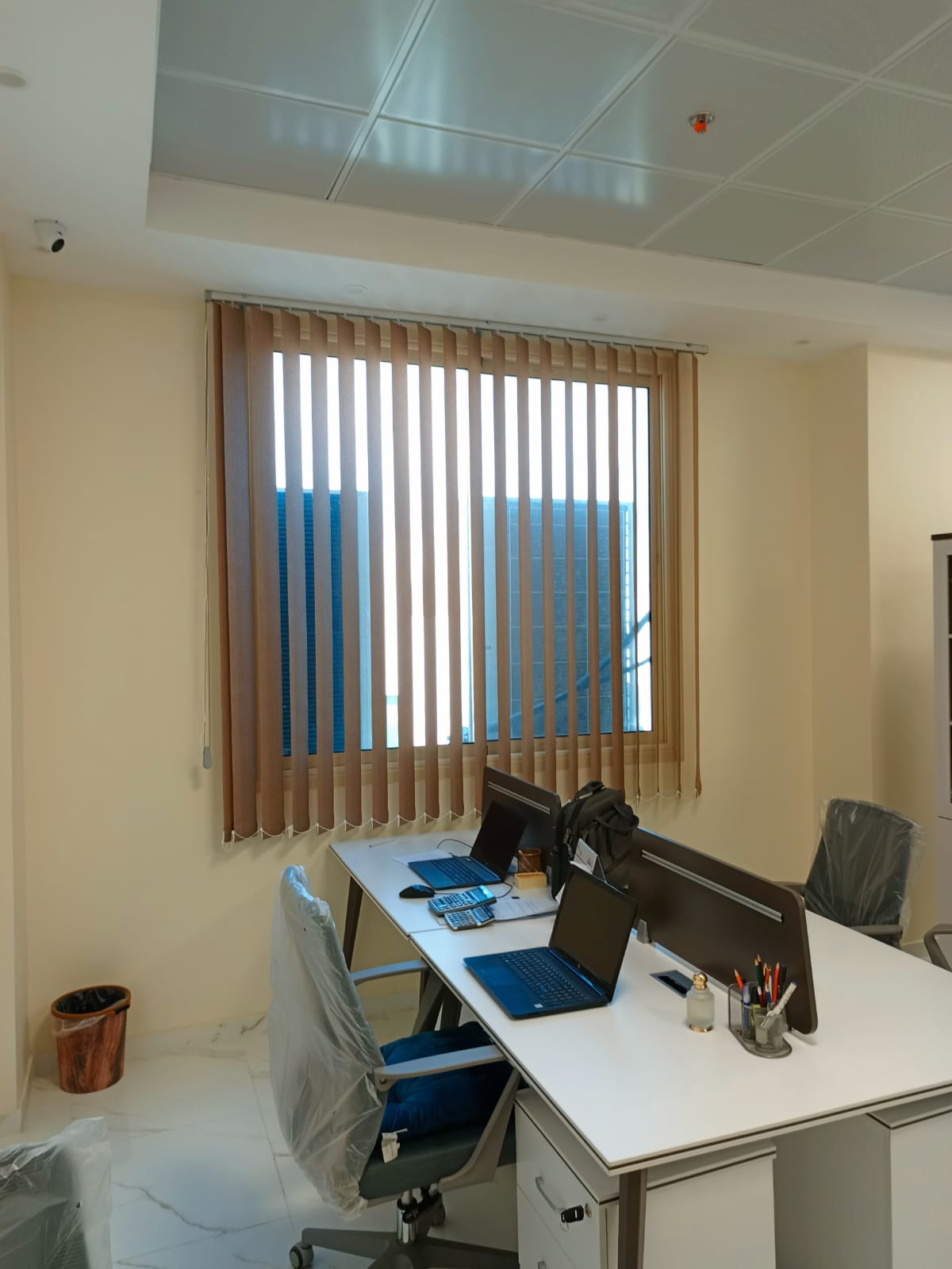 ستائر عمودية من كيان الأندلس تمنح مساحتك مظهرًا عصريًا وأنيقًا مع تحكم كامل في الإضاءة والخصوصية. تصميم عملي ومتناسق يناسب المكاتب، المنازل، والعيادات، مع خامات عالية الجودة لضمان المتانة وطول العمر. الحل الأمثل للجمع بين الأناقة والوظيفة في كل مكان.